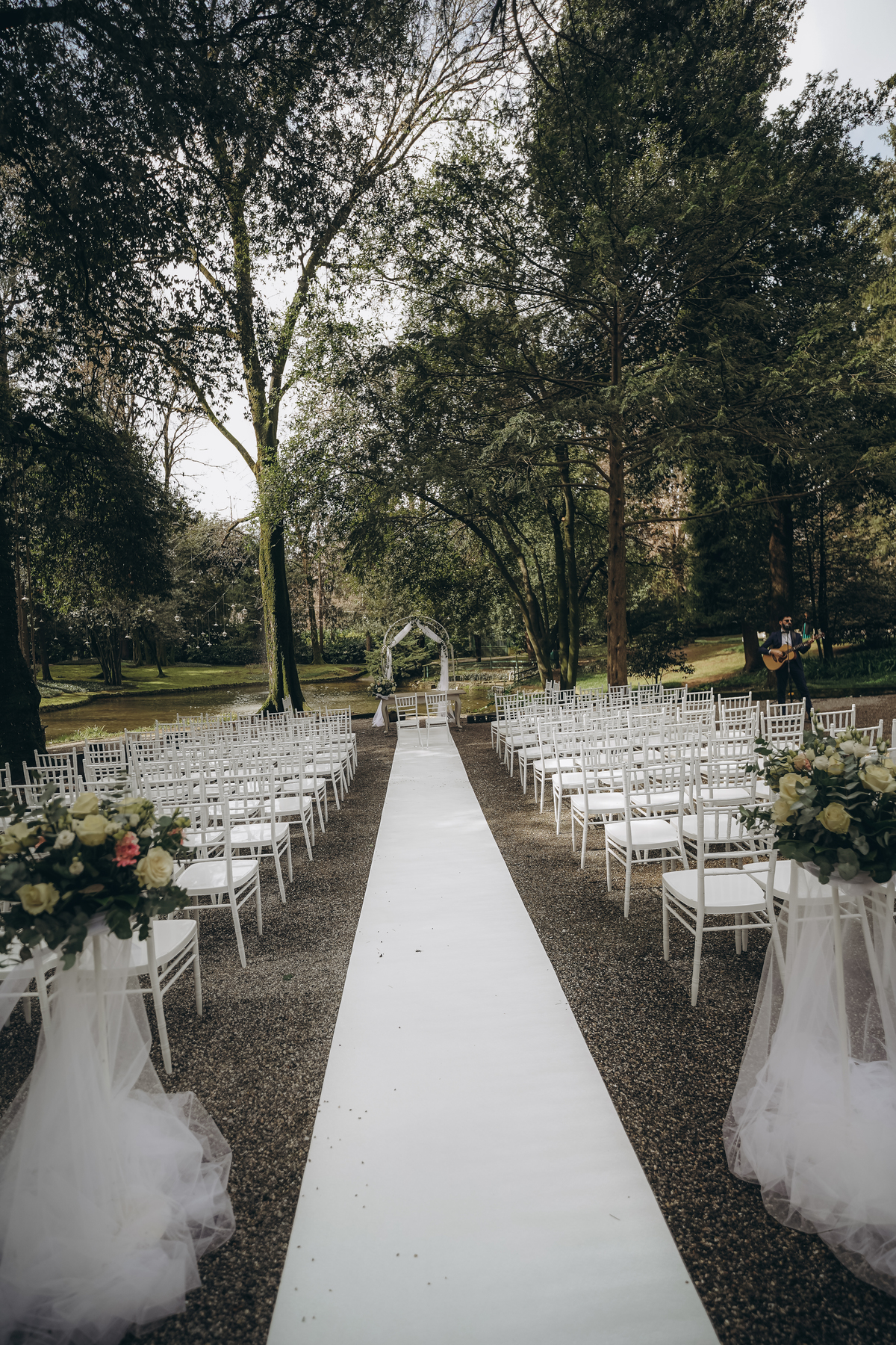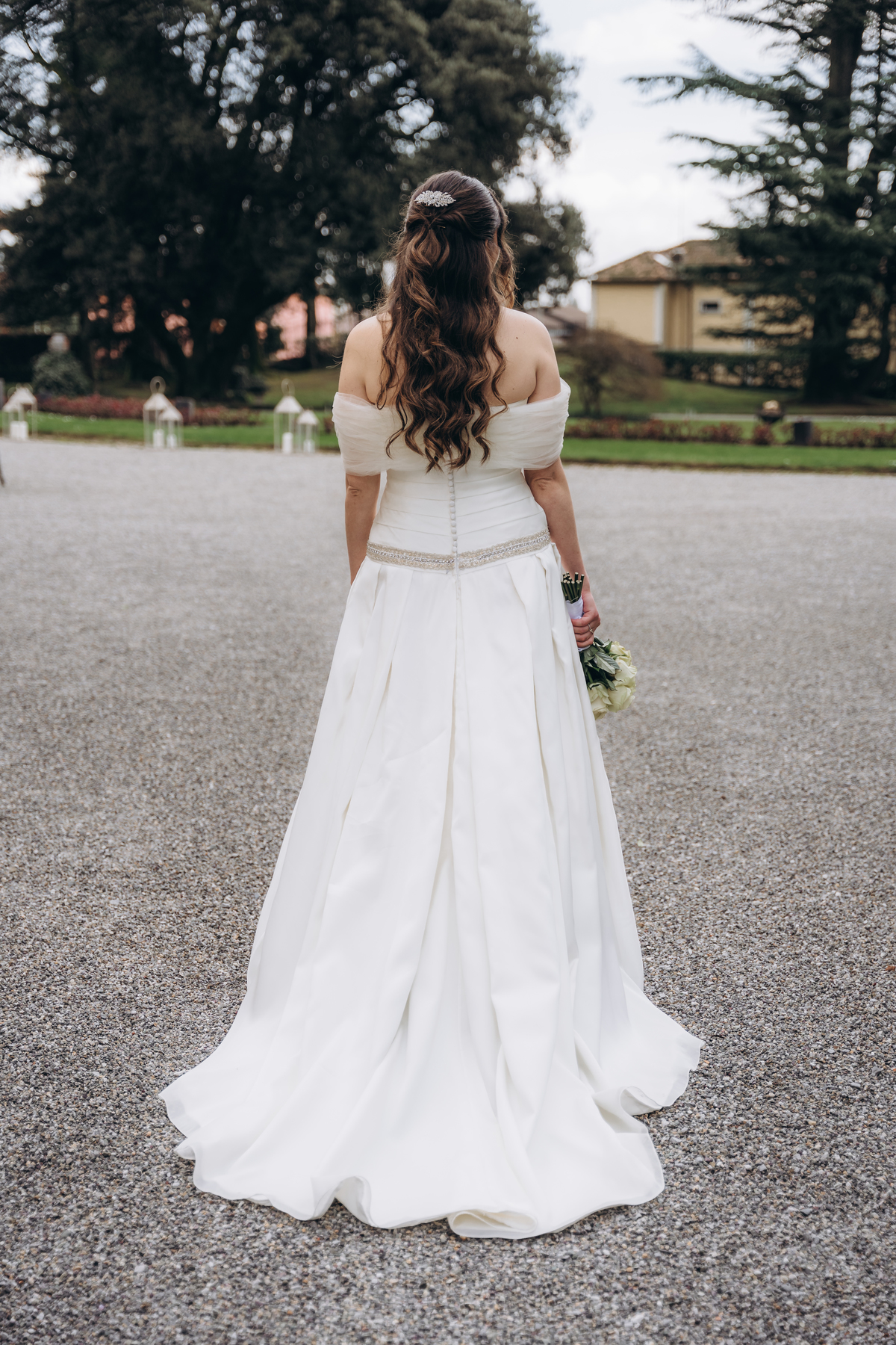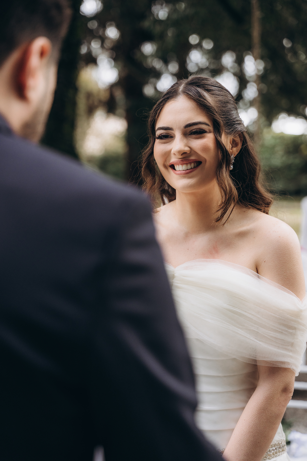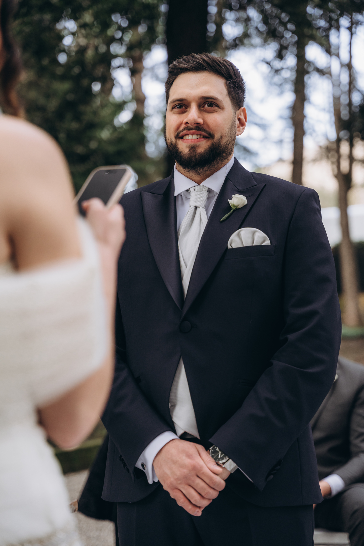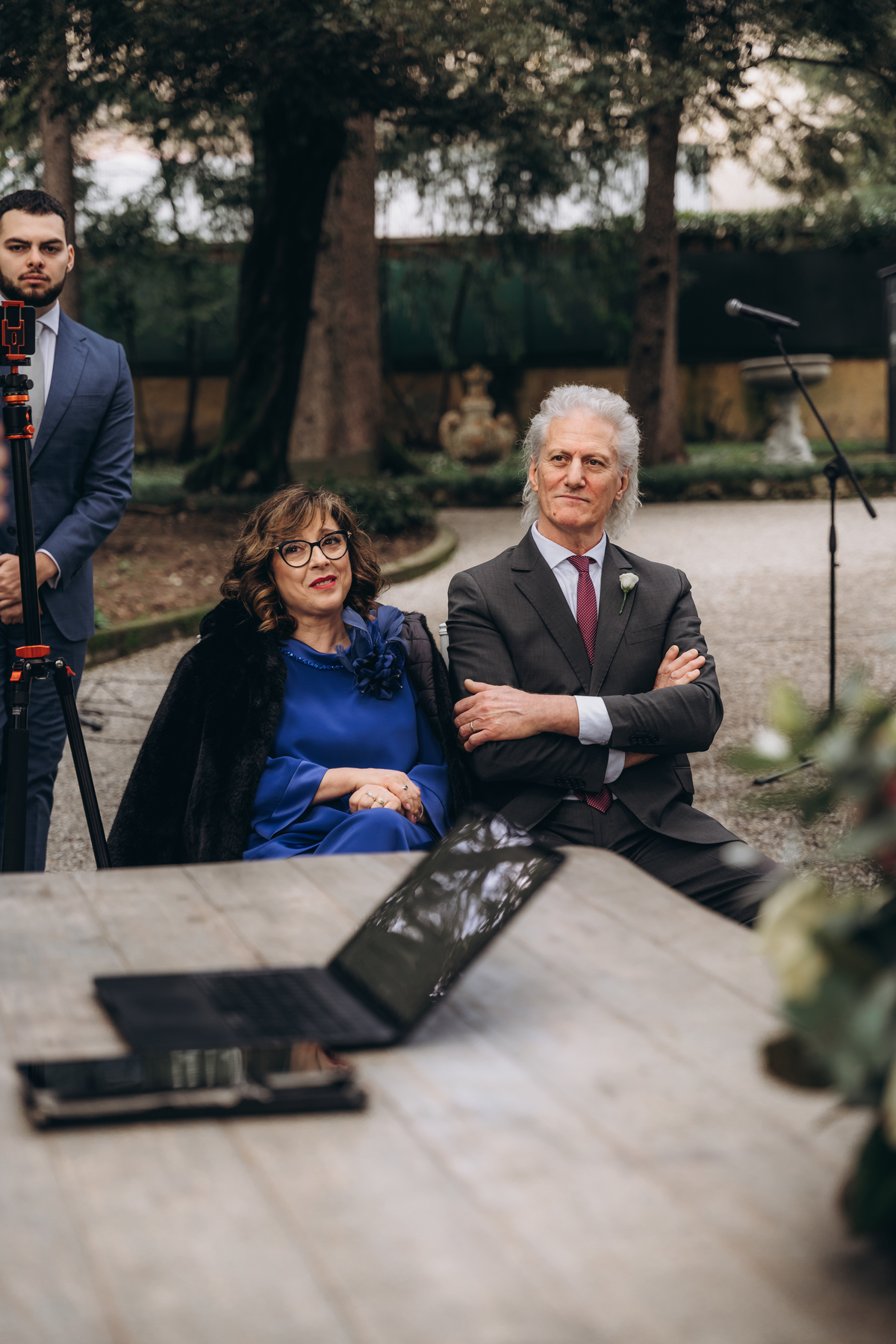La cerimonia si è svolta in un luogo incantevole, all’aperto, circondato da alberi secolari e con una bellissima villa sullo sfondo, che sembrava fatta apposta per un momento così speciale. È stato un matrimonio autentico, emozionante e pieno di bellezza naturale — di quelli che ti fanno sospirare a ogni scatto.