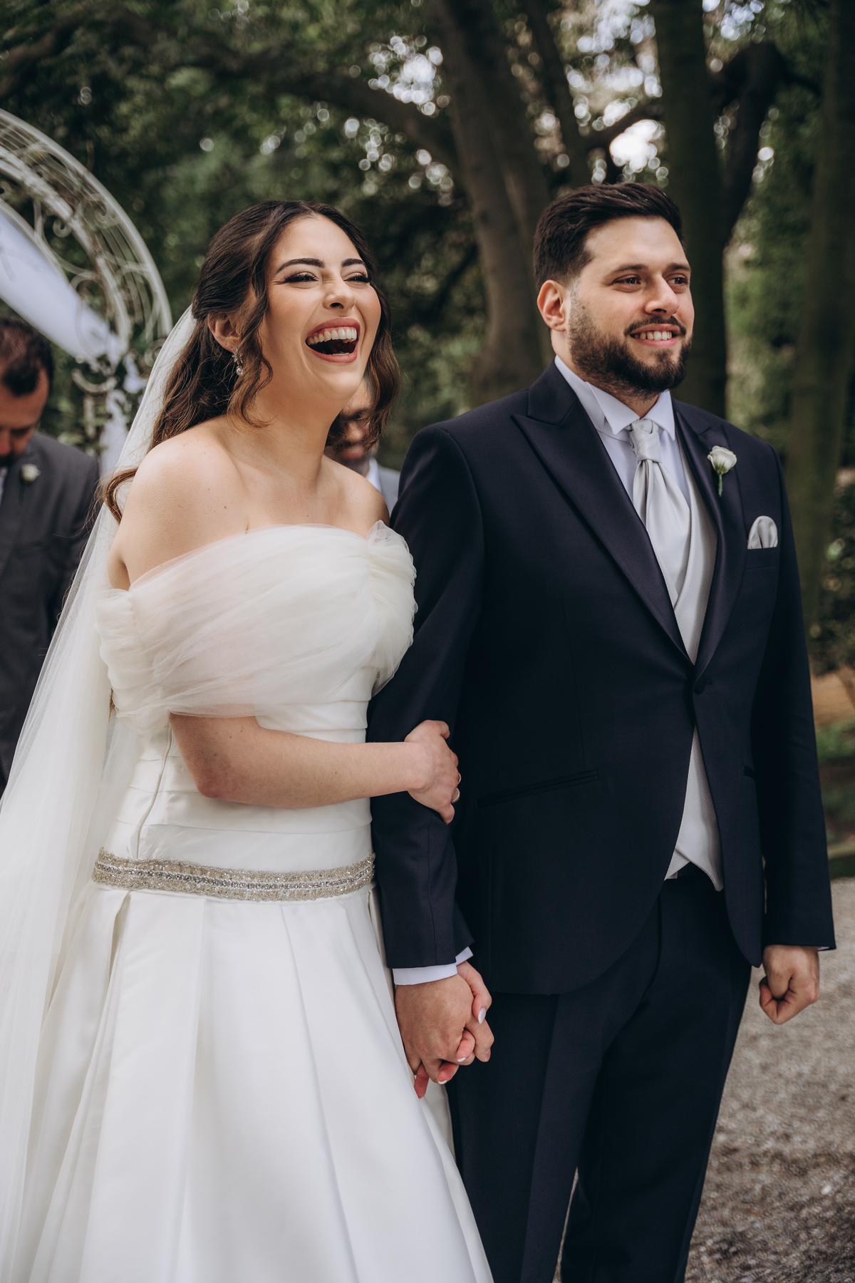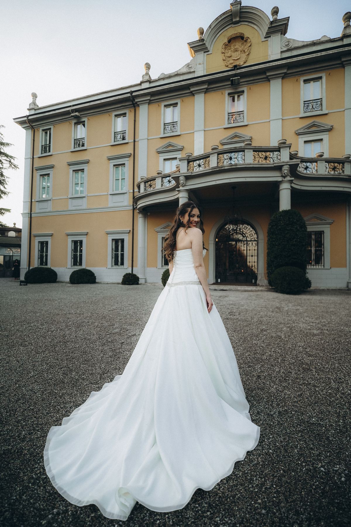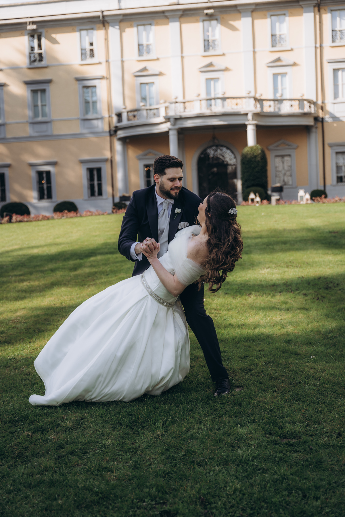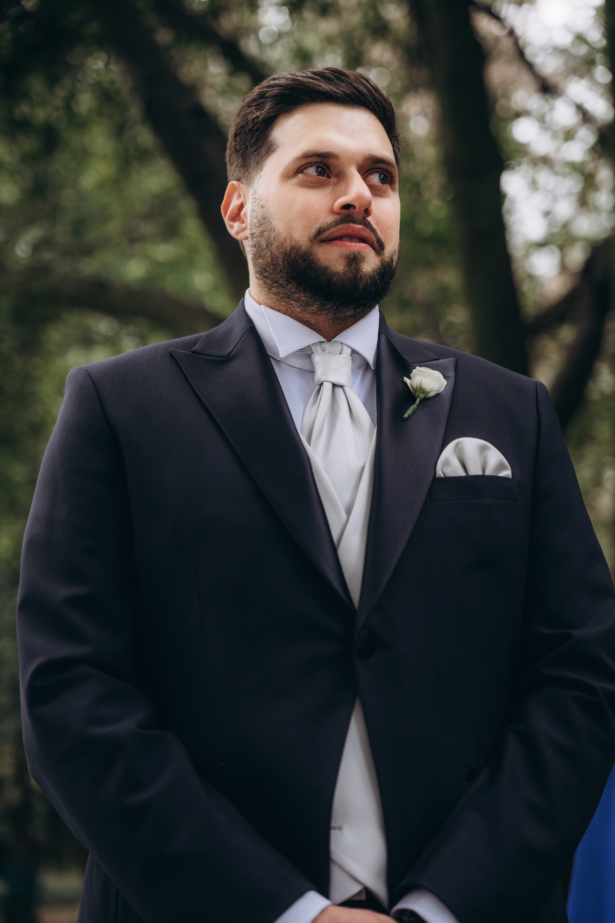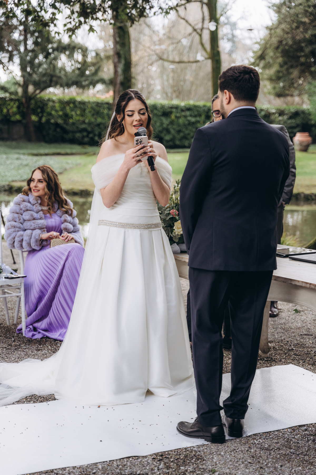 La cerimonia si è svolta in un luogo incantevole, all’aperto, circondato da alberi secolari e con una bellissima villa sullo sfondo, che sembrava fatta apposta per un momento così speciale. È stato un matrimonio autentico, emozionante e pieno di bellezza naturale — di quelli che ti fanno sospirare a ogni scatto.