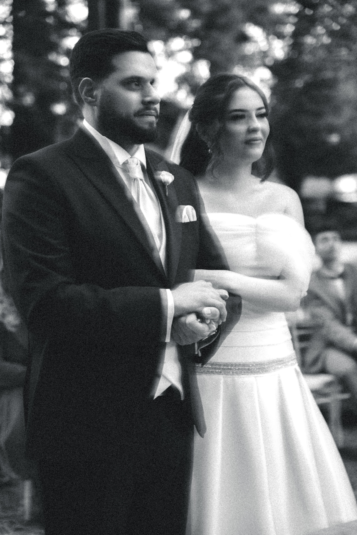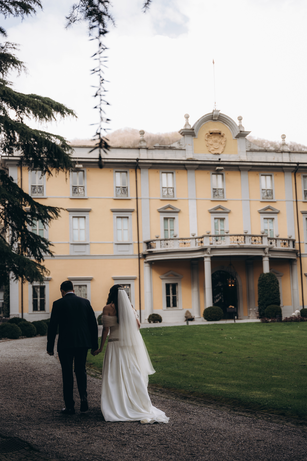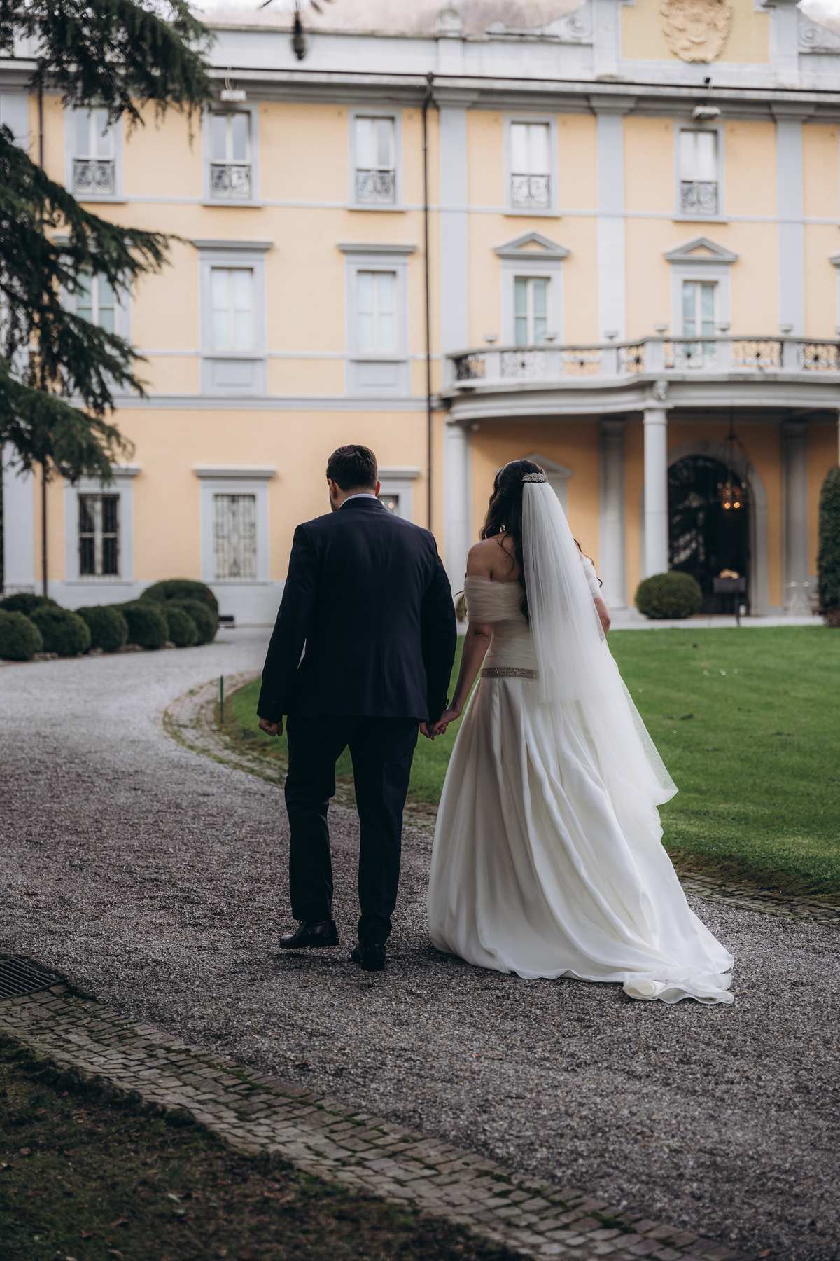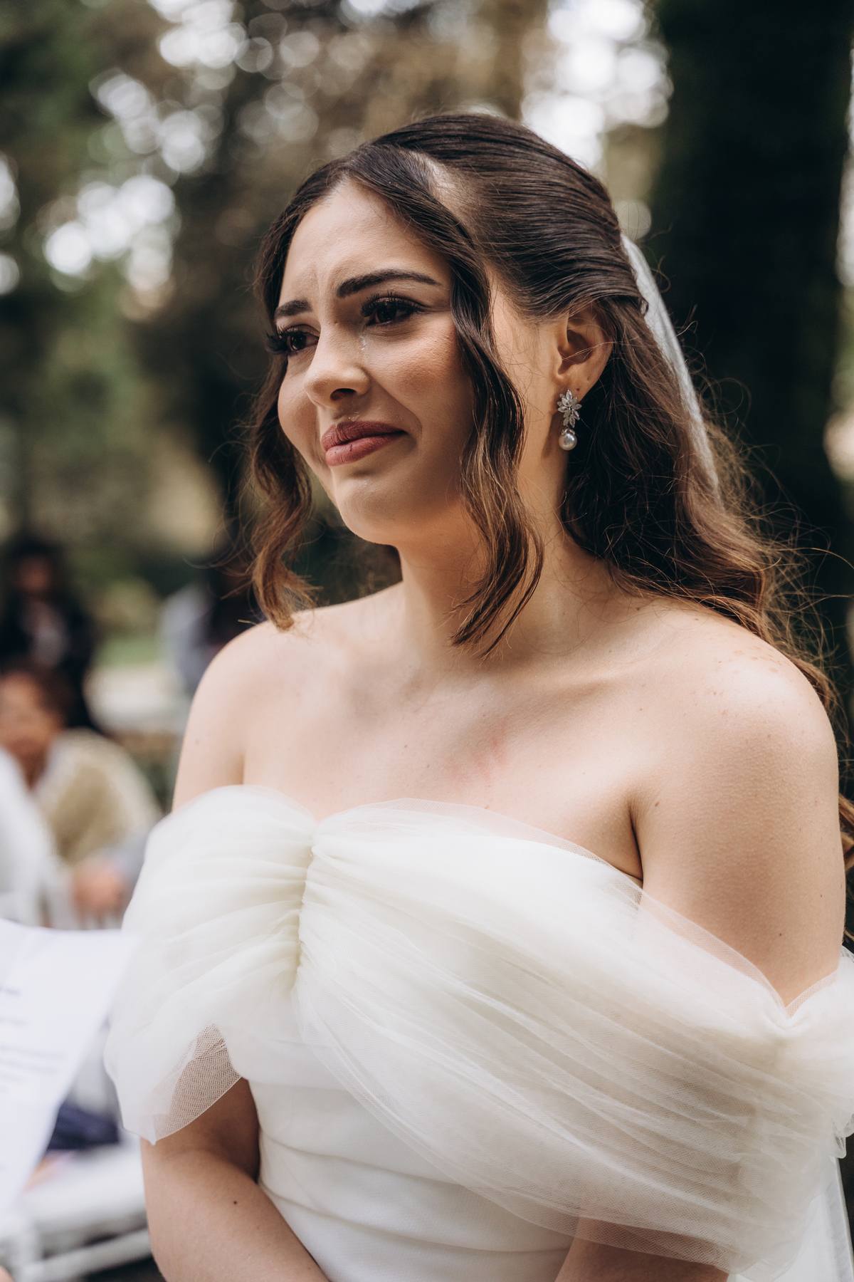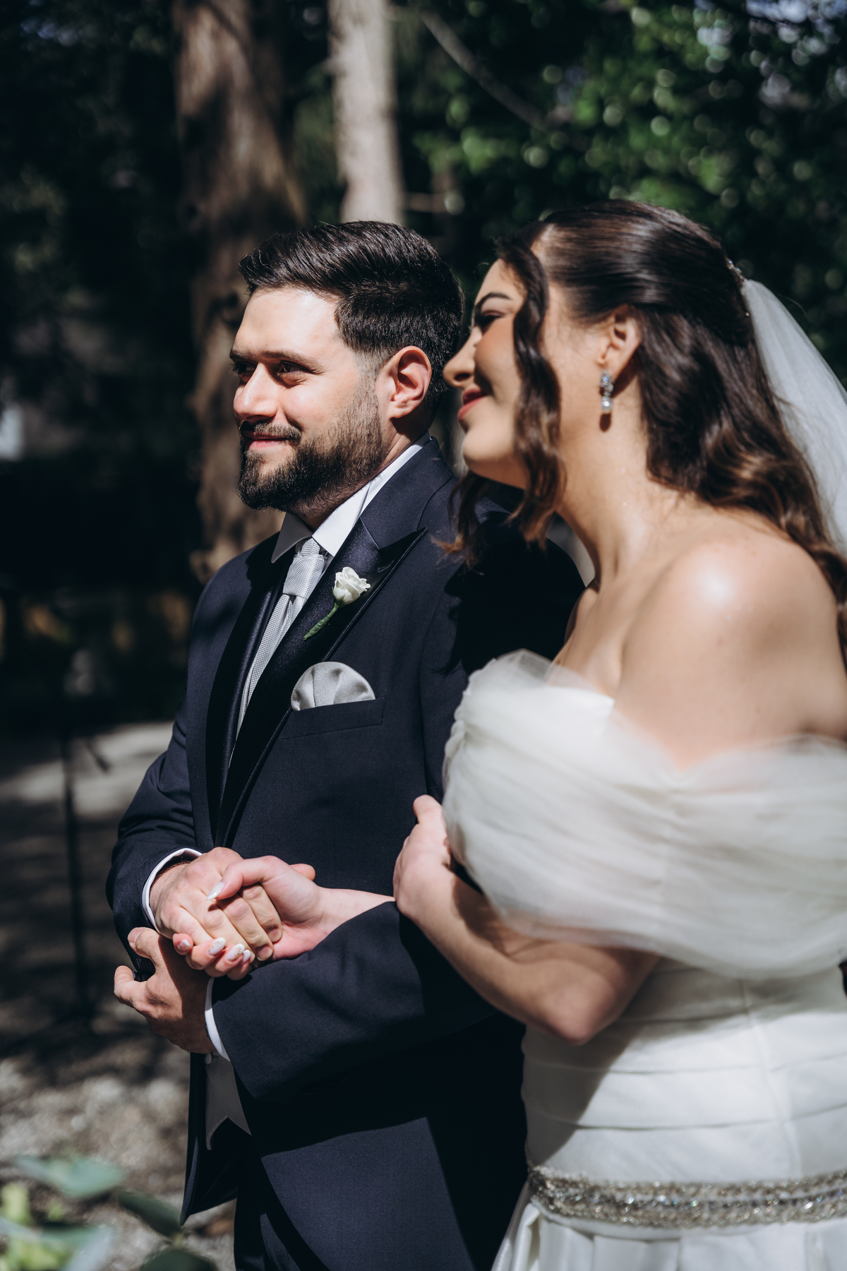La cerimonia si è svolta in un luogo incantevole, all’aperto, circondato da alberi secolari e con una bellissima villa sullo sfondo, che sembrava fatta apposta per un momento così speciale. È stato un matrimonio autentico, emozionante e pieno di bellezza naturale — di quelli che ti fanno sospirare a ogni scatto.