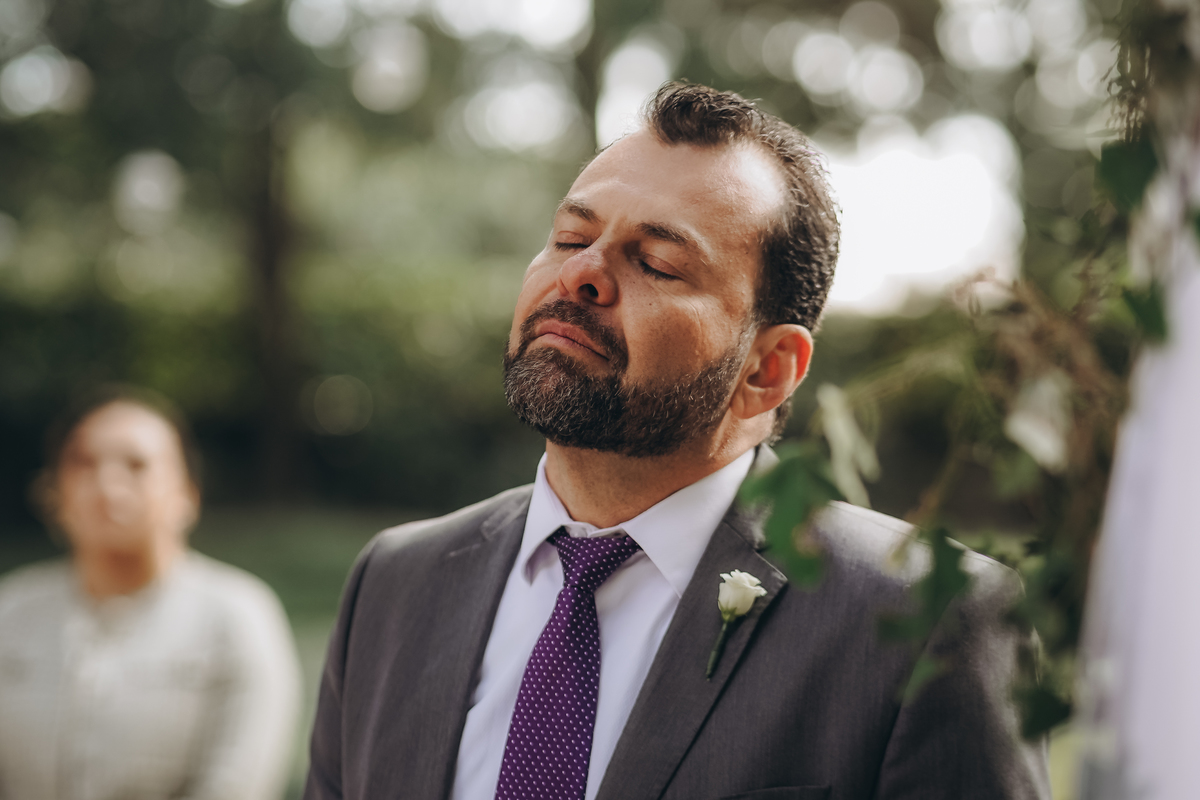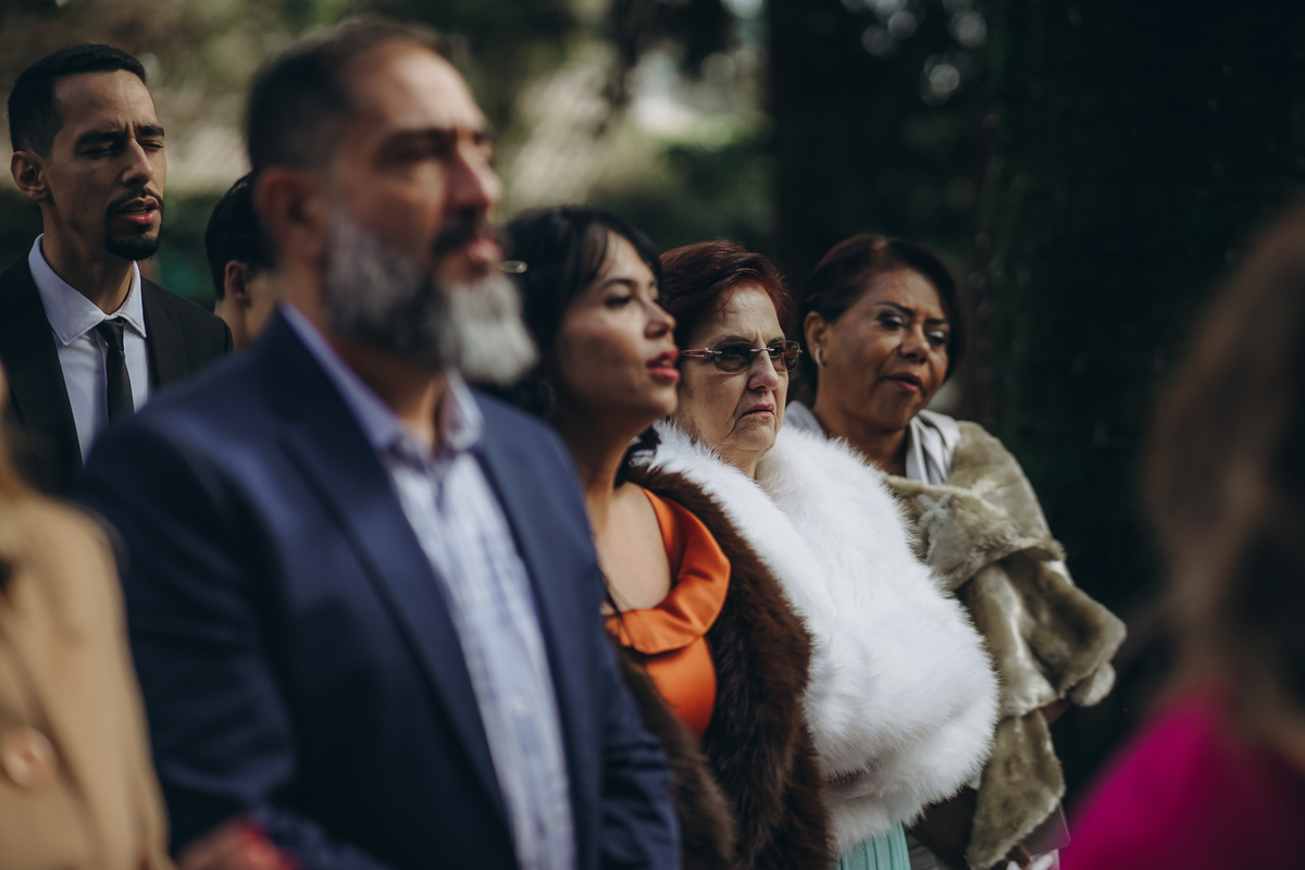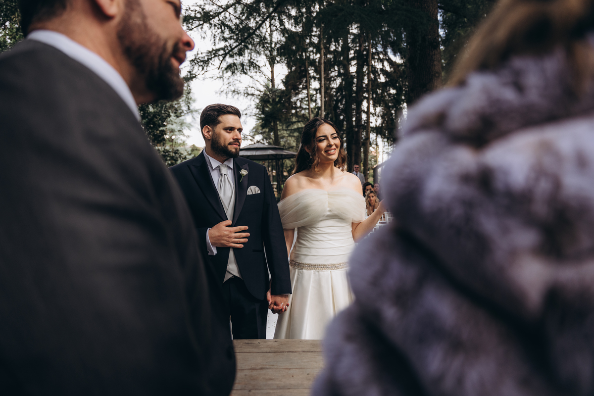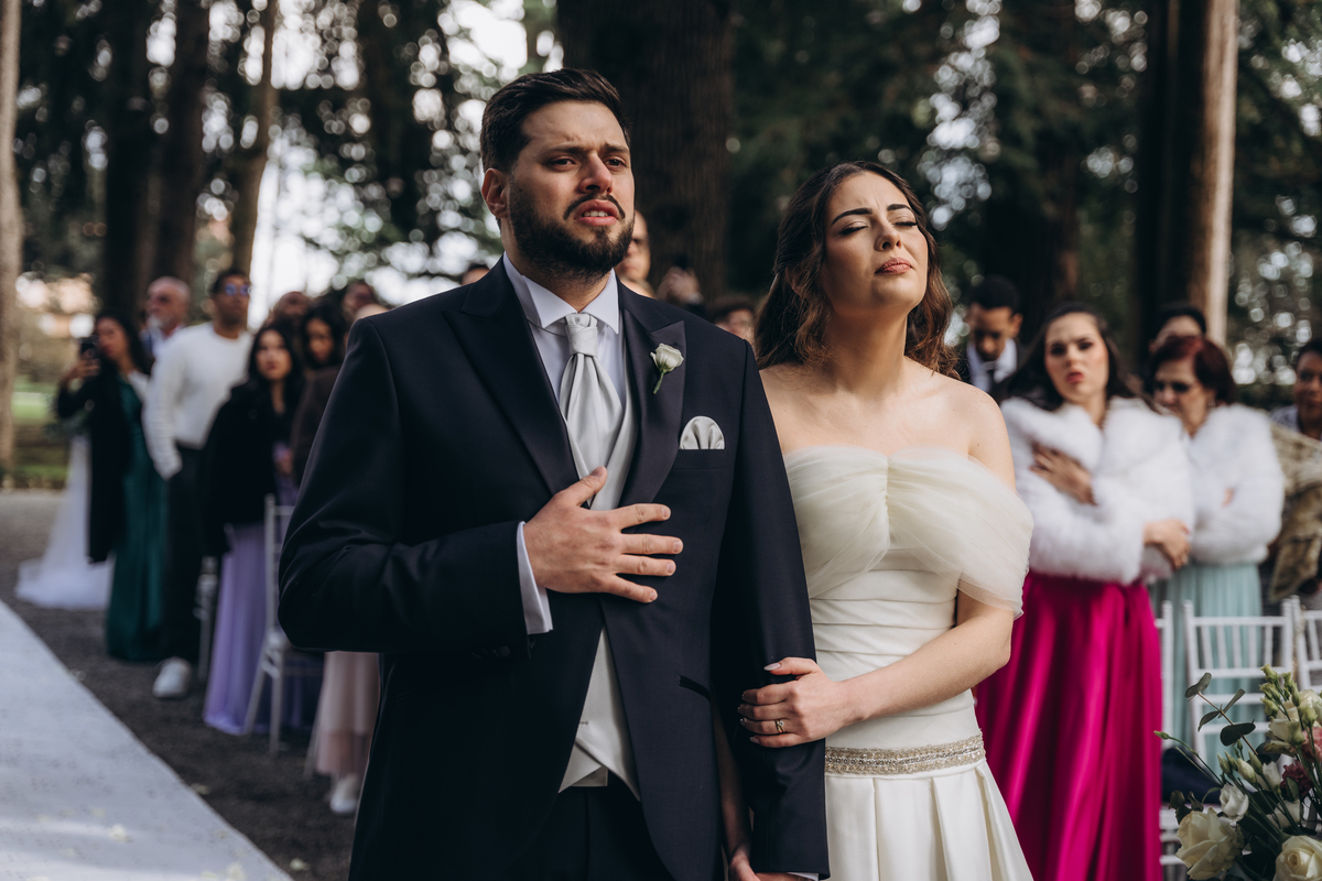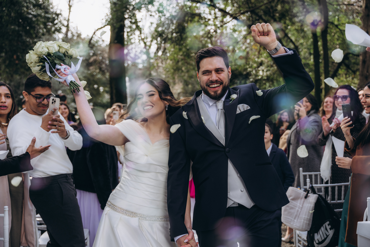 A cerimônia aconteceu em um local encantador, ao ar livre, cercado por árvores centenárias e com um belo casarão ao fundo que parecia ter sido feito sob medida para esse momento. Foi um casamento cheio de autenticidade, emoção e beleza natural — do tipo que faz a gente suspirar a cada clique.