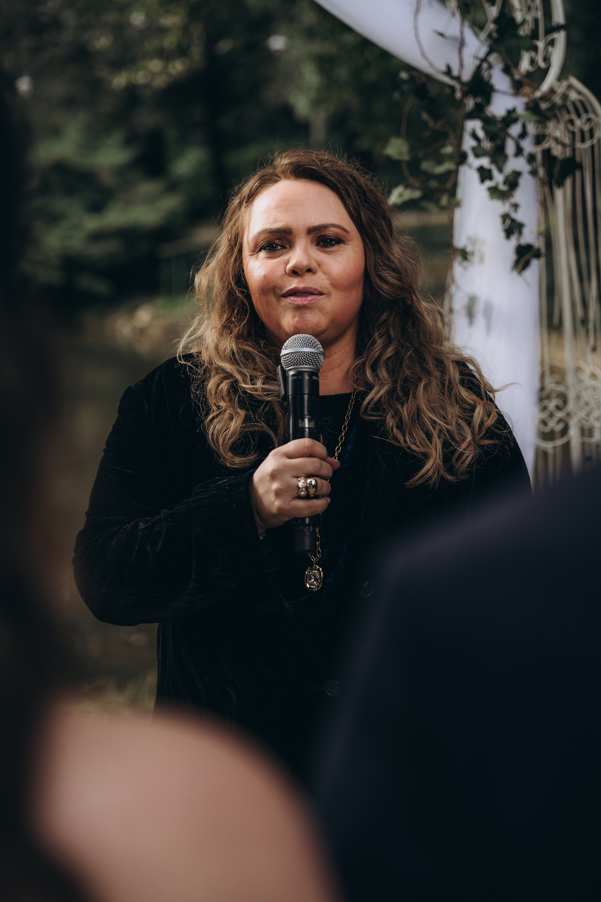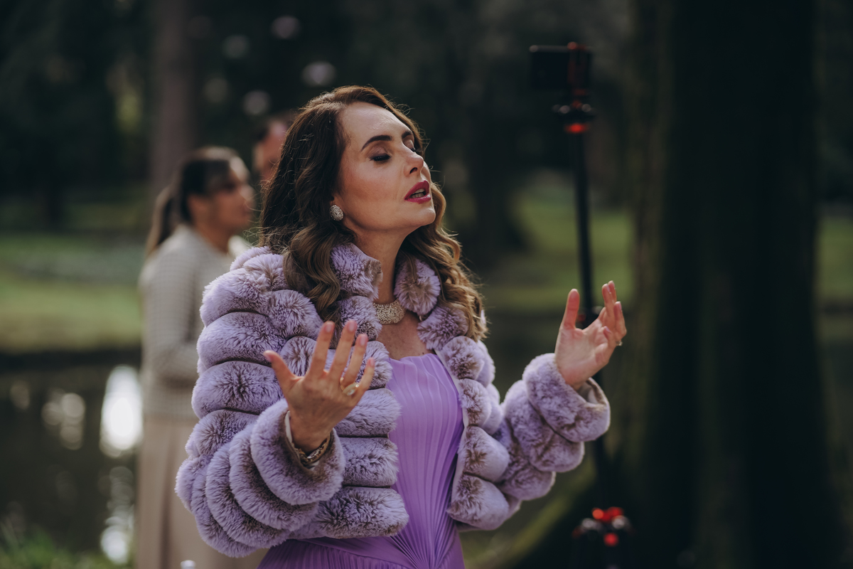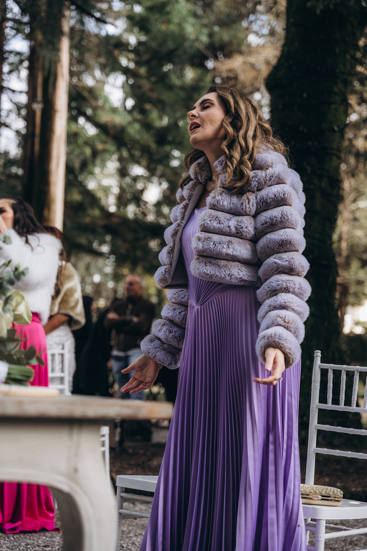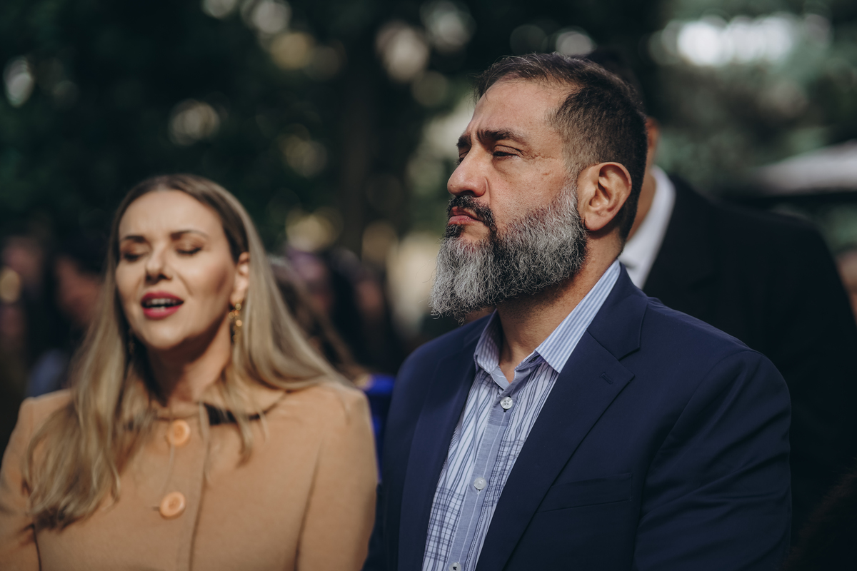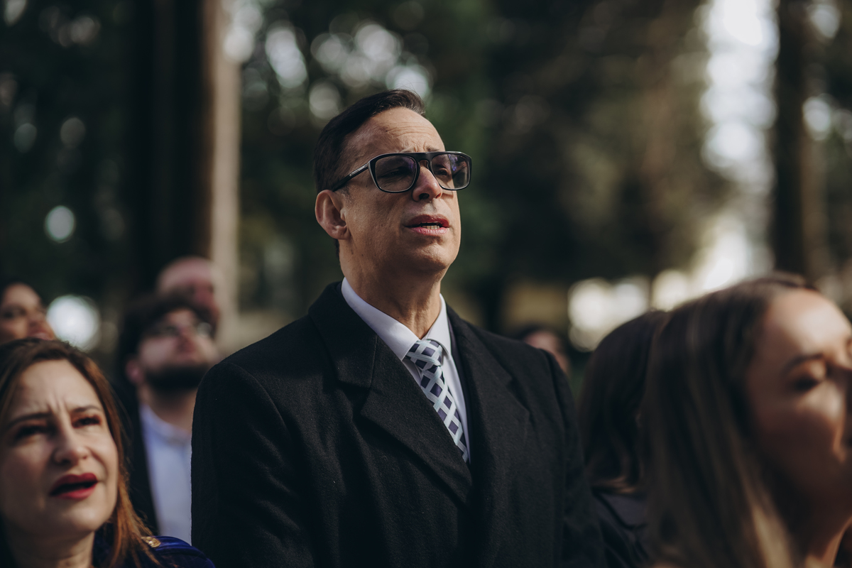 A cerimônia aconteceu em um local encantador, ao ar livre, cercado por árvores centenárias e com um belo casarão ao fundo que parecia ter sido feito sob medida para esse momento. Foi um casamento cheio de autenticidade, emoção e beleza natural — do tipo que faz a gente suspirar a cada clique.
